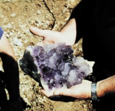 amethyst out of hole about 3 feet by 4 feet in diameter. Ironically, this pocket was located mere inches from where we had been digging by hand two years earlier. Anyone with a shovel could have dug to it in a