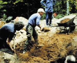 National Forest Service, we chose this place to begin our exploration as it was the only logical area in which to conduct a by-hand operation. With shovels, wheelbarrows, a Cobra rock drill and minor use of explosive we widened and deepened the hole by a
