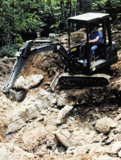 1993: As soon as the woods were clear of snow and the ground dried out a little (mid May); we moved the excavator to the bottom of the mountain and began the two-day harrowing ordeal of getting