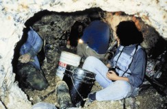 working our way down to the 4th of July complex level estimated to be about 10 to 15 feet underground. After several weeks of slow, foot by foot descent, we finally broke into a small pocket about 8 feet